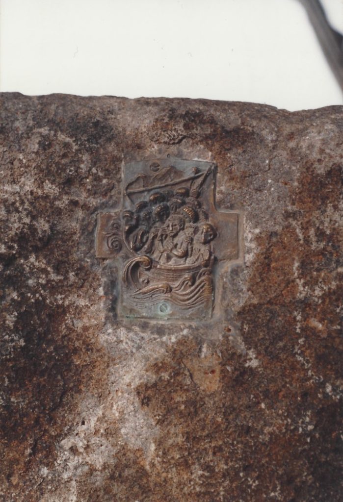 - in dem Seealtar aus Naturstein ist ein Bronzekreuz mit der Darstellung „Sturm auf dem See“ eingelassen