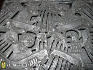 Meist sind die Amben aus Bronze gefertigt, dieser hier jedoch aus Aluminium.