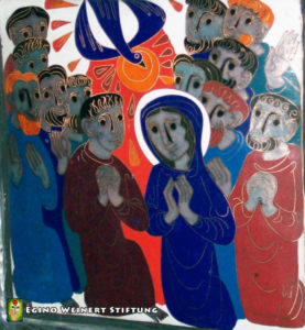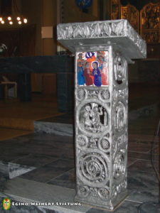 In dieser Kirche steht ein Ambo in Email von Egino Weinert. Ein schönes Emailbild mit der Herabkunft des Heiligen Geistes ziert seine Fronzseite.