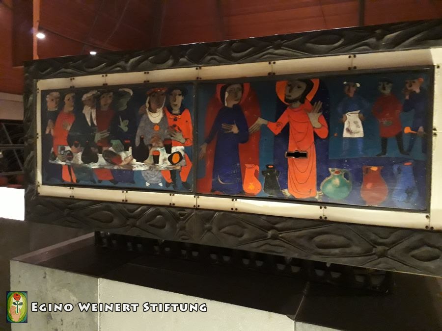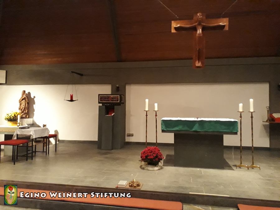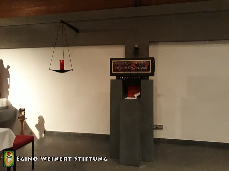 Viele Werke Egino Weinerts sind in dieser Kirche, welche 1957 eröffnet wurde, zu finden.