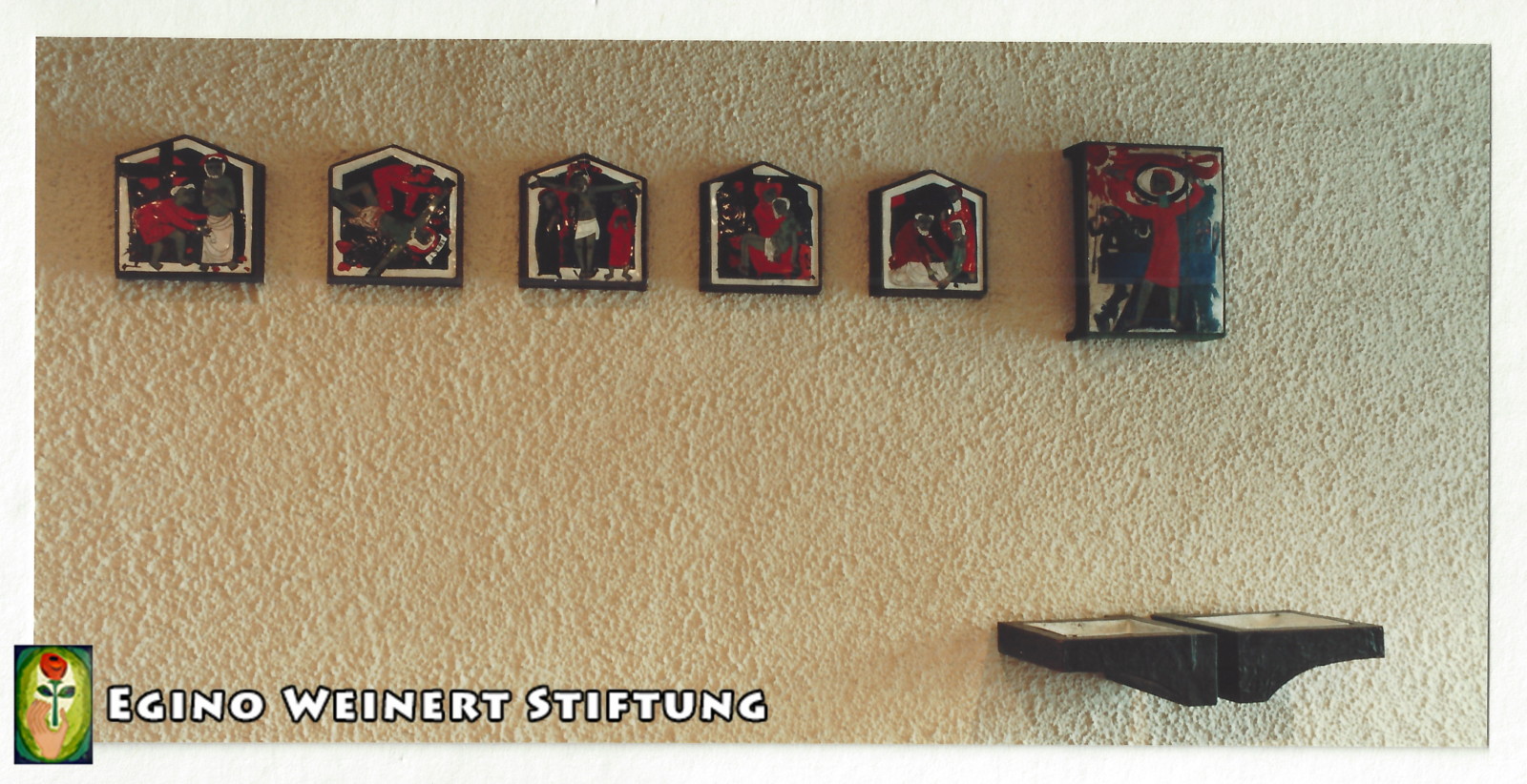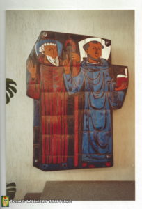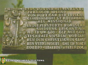 - Im Gemeindesaal ein großes Wandemail mit Darstellung St. Kolumban und St. Gallus