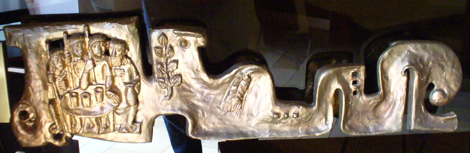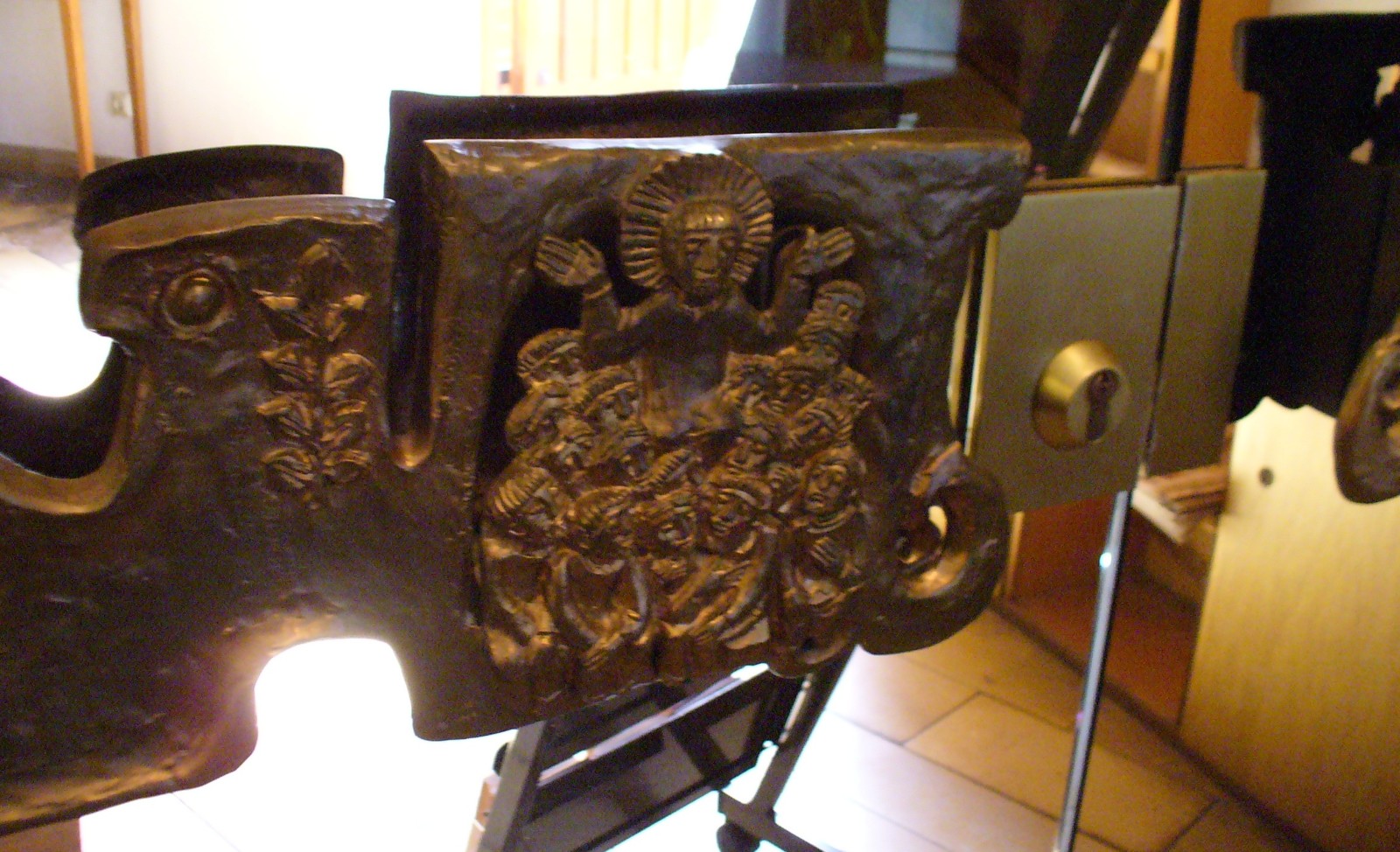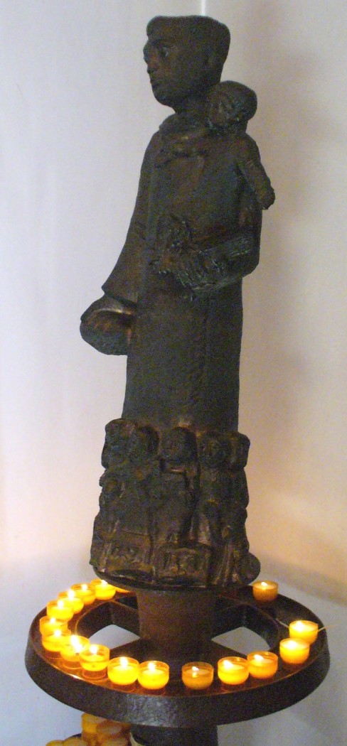 Hier finden wir eine Vollplastik des Heiligen Antonius, Türbänder mit Motiven des Alten und Neuen Testaments, sowie Bronzetafeln als Apostelleuchter.