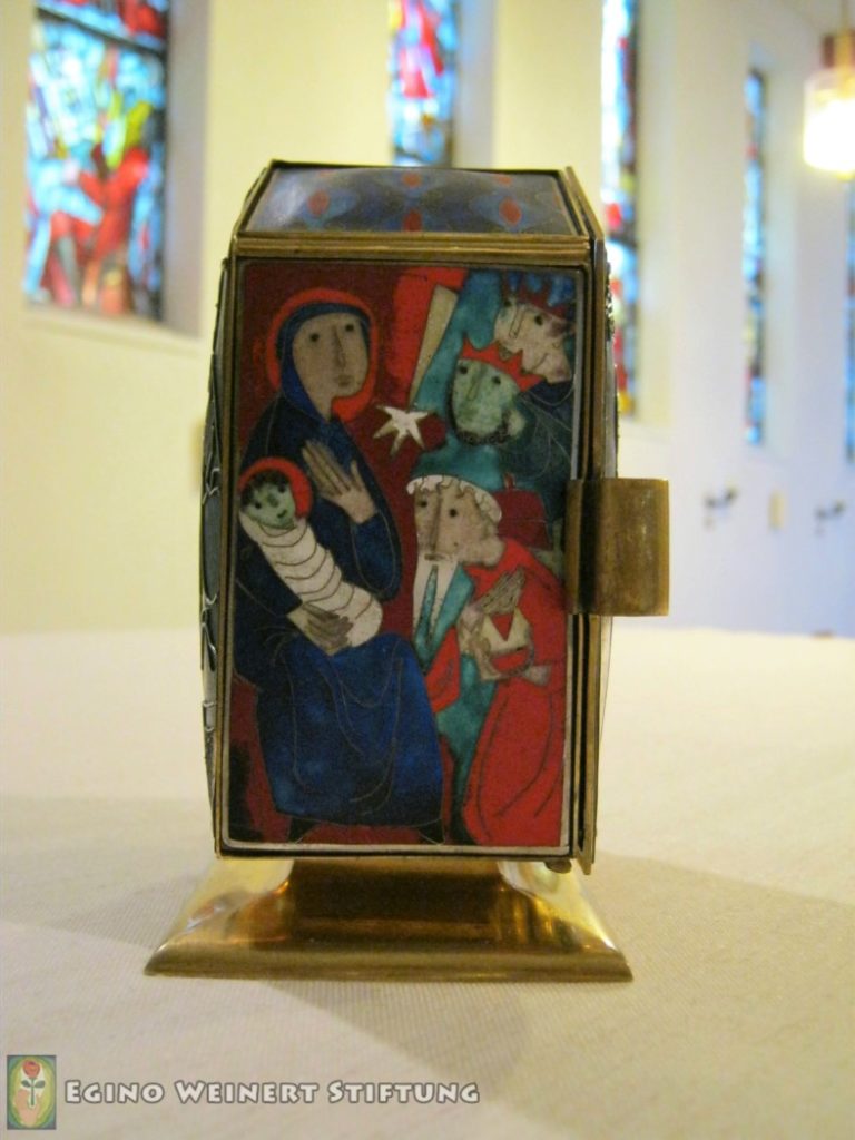Der Tabernakel wurde schon 1960 angefertigt und befindet sich seitdem in der Kapelle, ursprünglich stand er auf dem Altar.