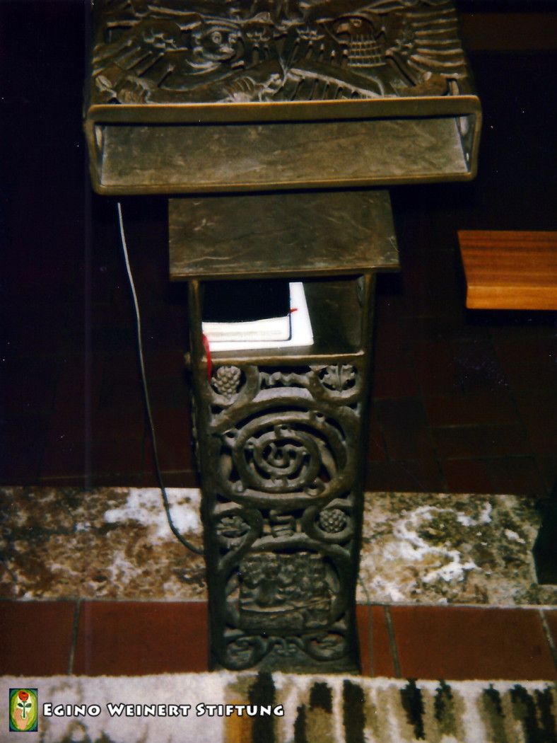 Köln (Mülheim) – St. Elisabeth Der bronzene Ambo von Egino Weinert befindet sich in der Kirche St. Elisabeth in Köln Mülheim. <- zurück
